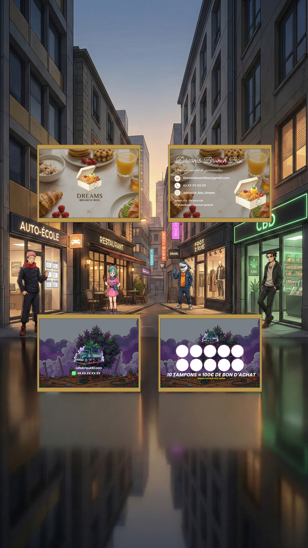 Des cartes de visite et de fidélité au design propre et impactant, pensées pour renforcer ton image et inciter au retour.